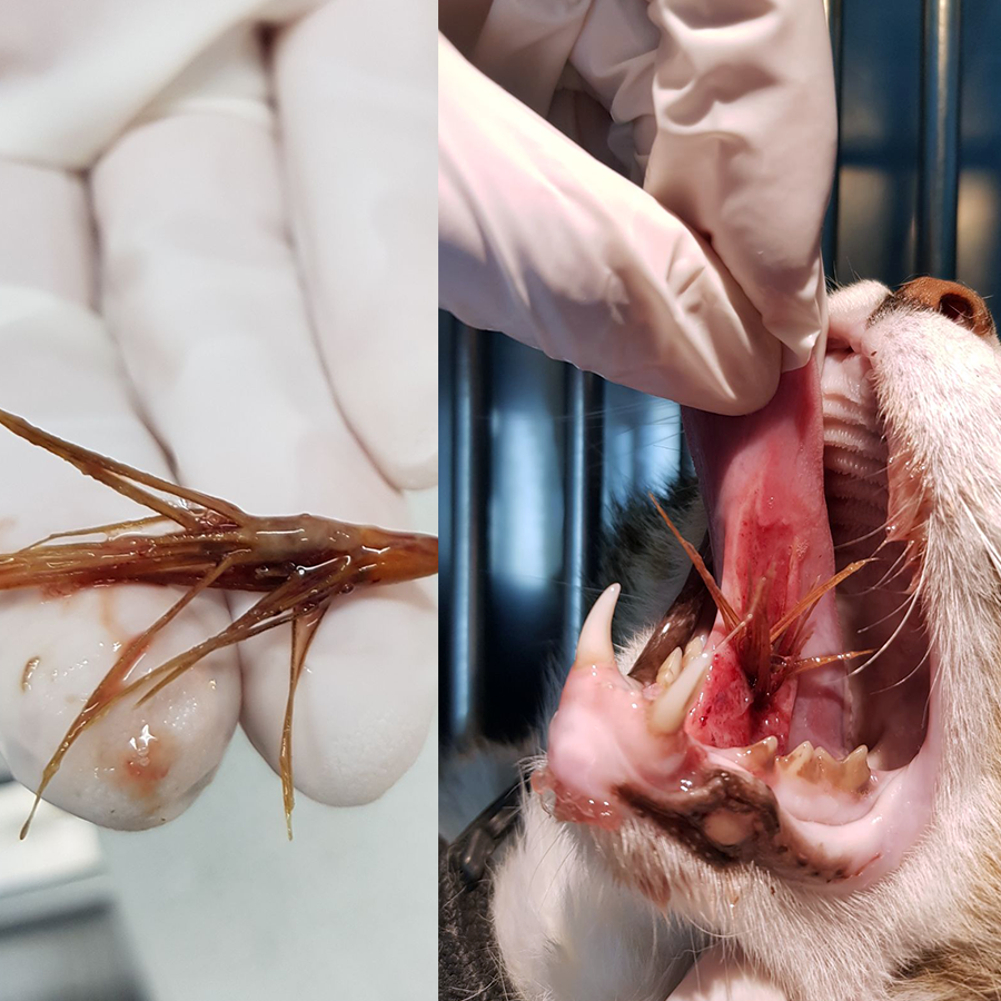 השבוע הגיע למרפאתנו חתול (ביקש להשאר אנונימי) בתלונה על ריח רע מהפה וקושי באכילה. בבדיקה בהרדמה נמצא מלען שהתחבא מתחת ללשון ויצר זיהום קשה. הוצאת המלען בוצעה במהלך ההרדמה והחתול שוחרר עם אנטיביוטיקה הביתה. לקוחות יקרים עונת המלענים הגיעה אנא שימו לב כי חבריכם על ארבע לא חוזרים איתם הביתה 🙂