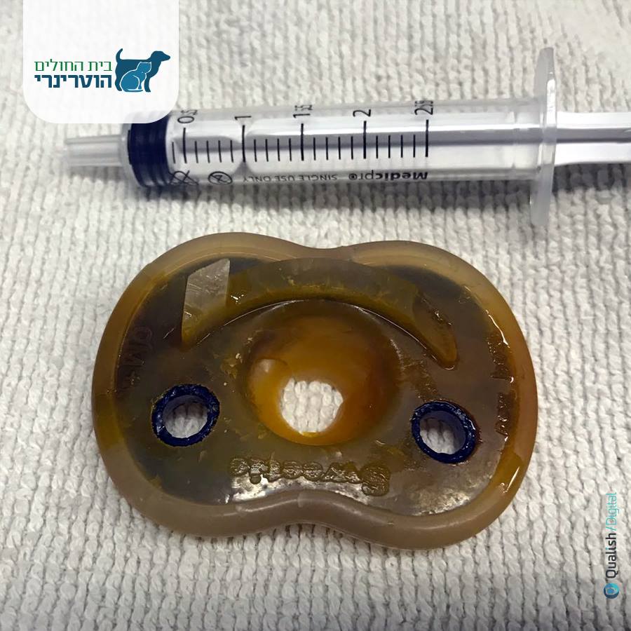 לאקי הגיע למרפאתנו בתלונה על הקאות וירידה בתאבון, באולטרסאונד היה חשד סביר לגוף זר במעי שבעקבותיו לאקי הוכנס לניתוח בטן חוקרת, בניתוח התגלה מוצץ שנתקע במעי. לקוחות יקרים לכלבים יש נטיה לנשנש מוצצים ומשחקים של ילדים קטנים אנחנו ממליצים לוודא ששום חפץ לא נשאר על הרצפה ללא השגחה.