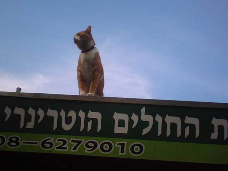 חתול בצמרת מרפאת ביאליק