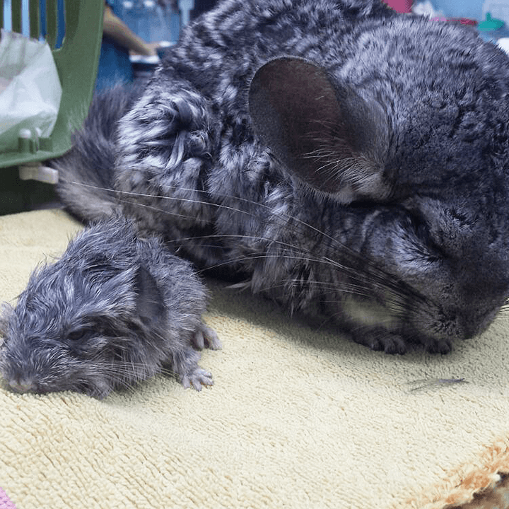 מקרה מהמרפאה: הצ'ינצ'ילה שבתמונה, שמה "סימי" והיא בת כמעט שנתיים. זאת ההמלטה השנייה שלה וגם הפעם, כמו בהמלטה הראשונה, הגור היה מאוד גדול והיא עברה ניתוח קיסרי. תקופת ההריון של צ'ינצ'ילה היא 111 ימים בממוצע והגורים נולדים מכוסים בפרווה (עם שיניים!!). מאחלים מזל טוב!