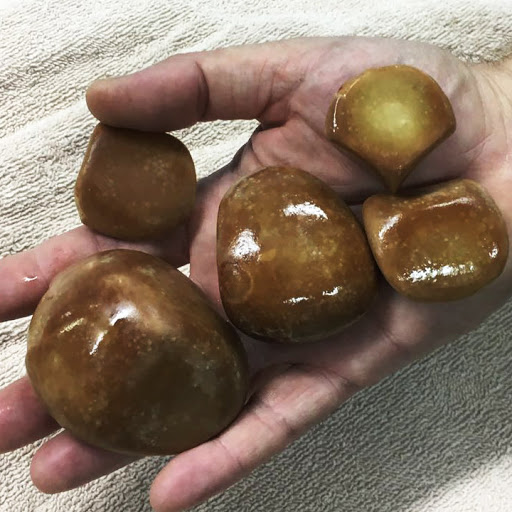 הוצאנו את האבנים האלו משלפוחית שתן של כלבה שהגיעה אלינו למרפאה. אבנים בדרכי השתן הינה תופעה נפוצה הן בכלבים והן בחתולים והיווצרותם יכולה לגרום לחסימת שתן. אבנים בדרכי השתן יכולים להיווצר ממספר סיבות, לרוב סיבות אלו גורמות לשינויים ברמת החומציות של השתן, שקיעה של קריסטלים ובהמשך היווצרות של אבנים. דוגמאות לסיבות של שינויים ברמת חומציות הן: תזונה, דלקות בדרכי השתן, מטבוליזם ספציפי של אותו הכלב, גנטיקה ועוד... חשוב לציין כי חסימת שתן הינה מקרה חירום ויש לפנות מיד לוטרינר המטפל.
